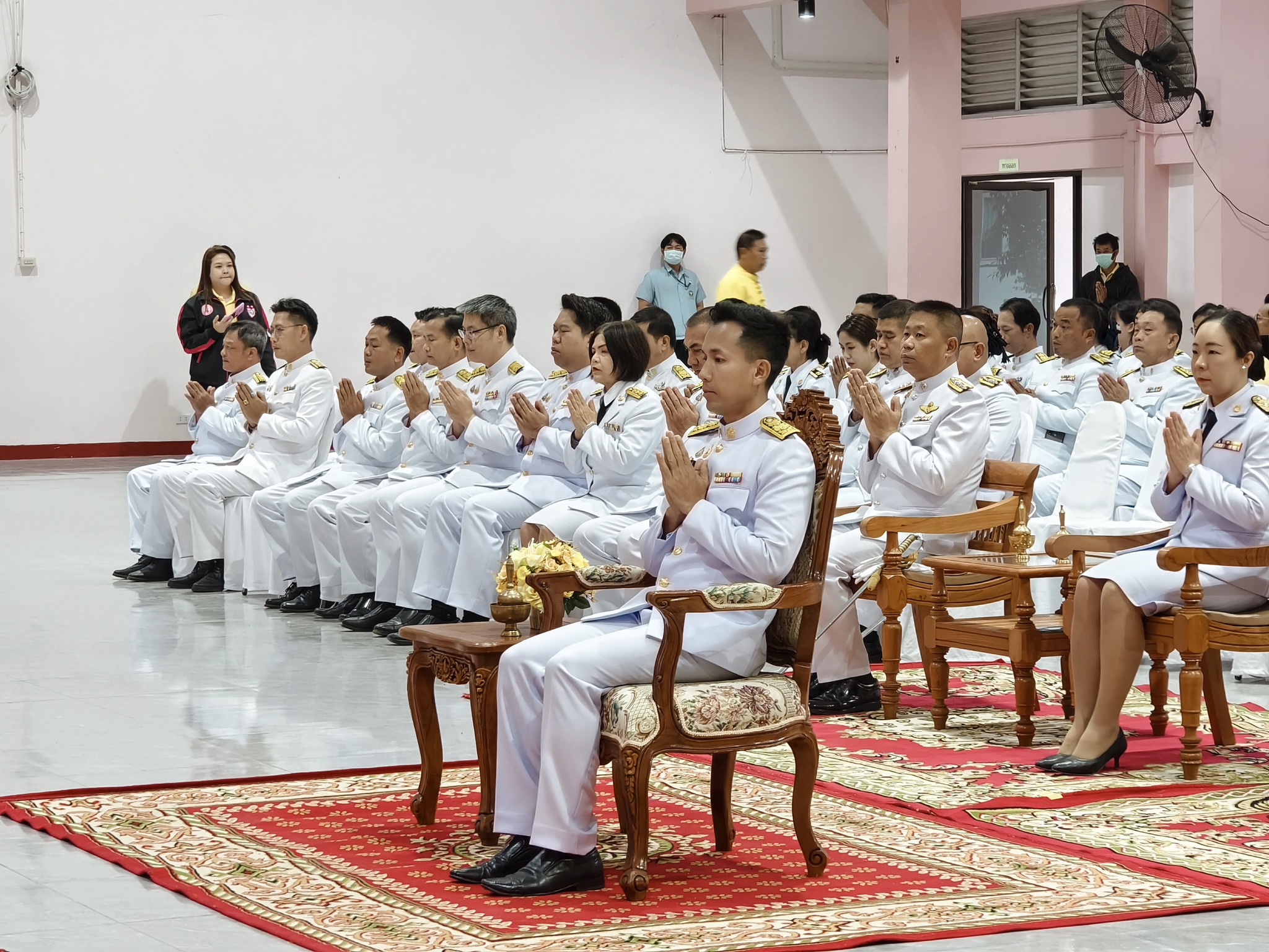 ร่วมพิธีเจริญพระพุธมนต์และทำบุญตักบาตรถวายพระราชกุศล และพิธีวางพุ่มดอกไม้ถวายบังคมพระบาทสมเด็จพระบรมชนกาธิเบศร มหาภูมิพลอดุลยเดชมหาราชบรมนาถบพิตร