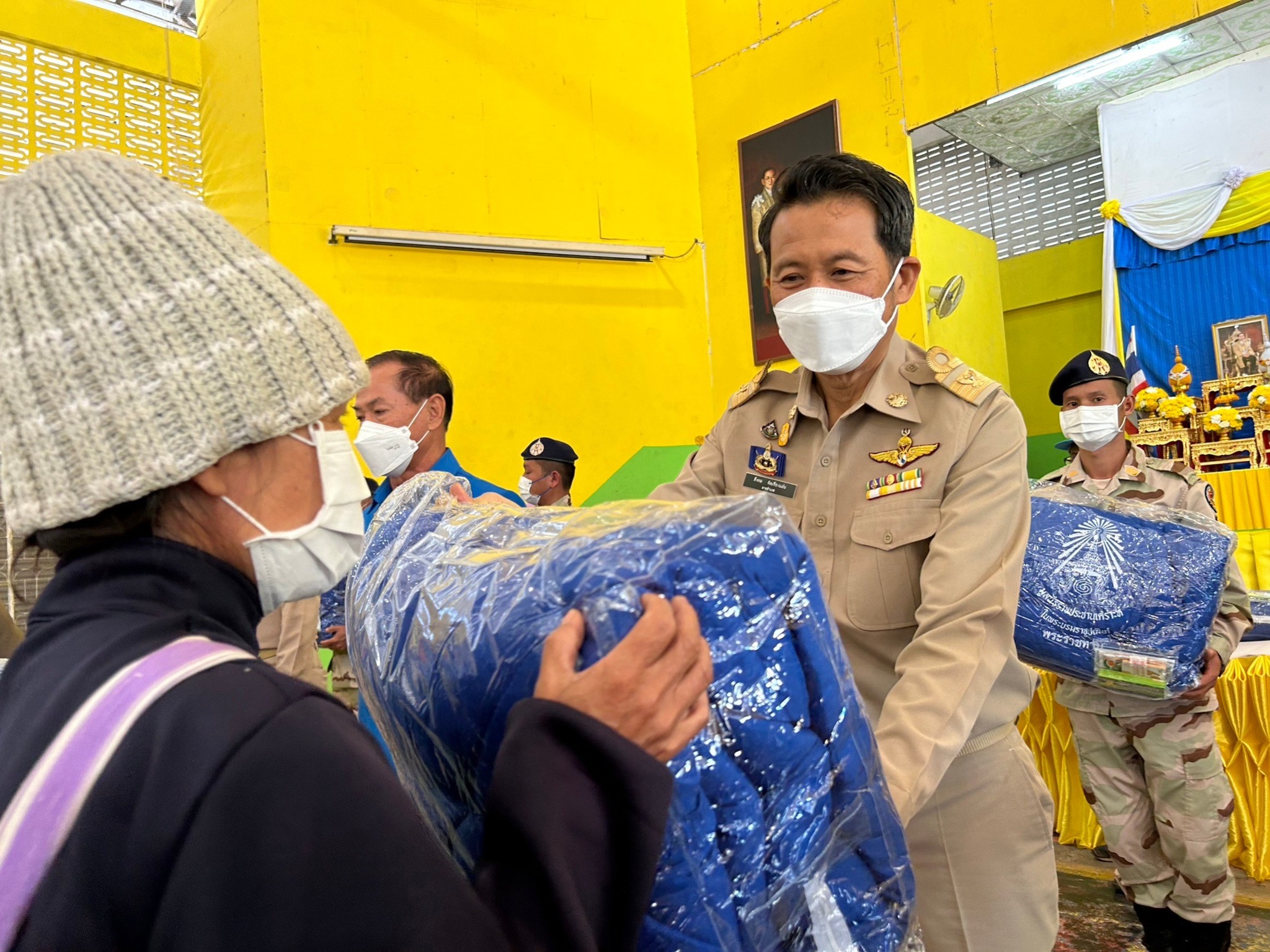 องคมนตรี มอบผ้าห่มกันหนาวและชุดยาเวชภัณฑ์พระราชทาน มูลนิธิราชประชานุเคราะห์ในพระบรมราชูปถัมภ์ ให้แก่ราษฎรที่ประสบภัยหนาว
