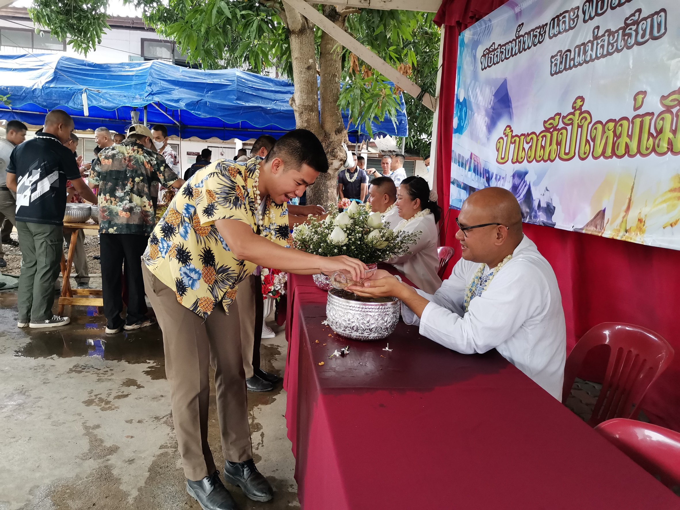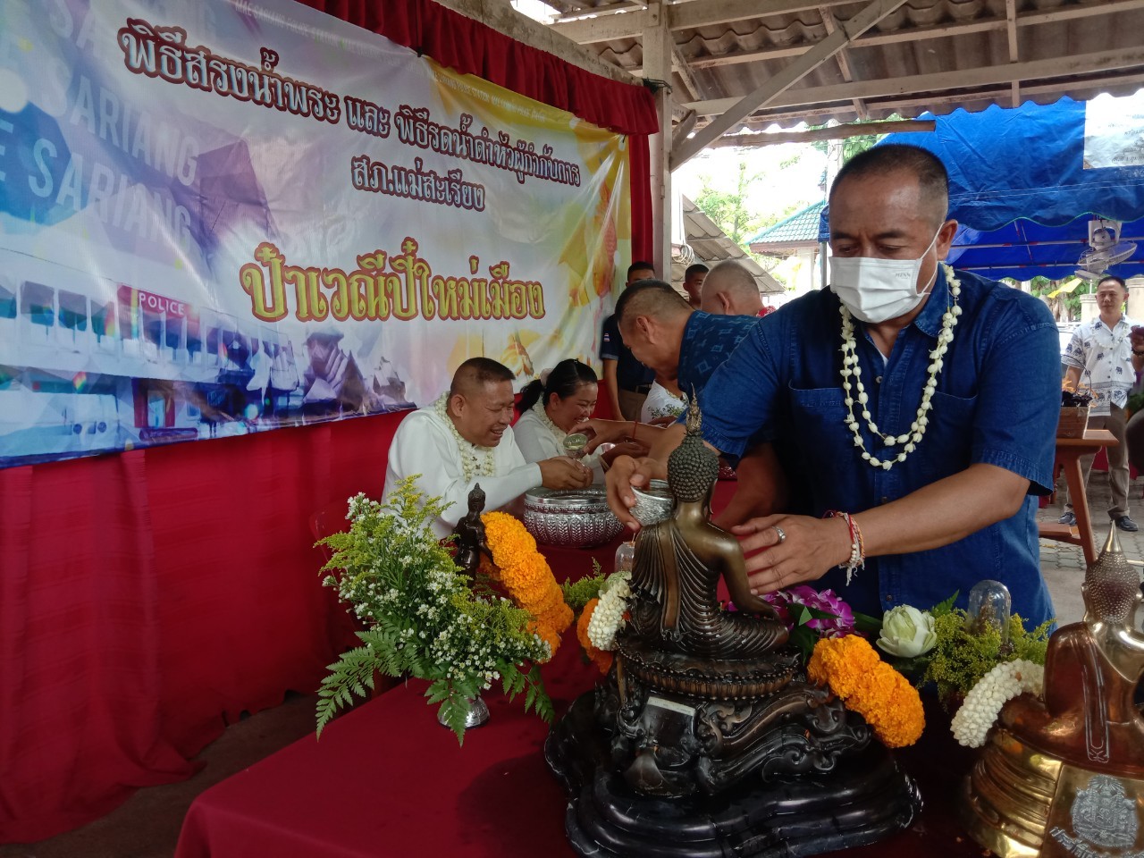 พ.ต.อ.รัฐวิชญ์ วศินพงษ์ธนัช ผกก.สภ.แม่สะเรียง ได้ทำพิธีสักการะศาลหลักเมืองแม่สะเรียงและสักการะศาลพระภูมิเจ้าที่ และเวลา 11.00 น. สภ.แม่สะเรียงได้มีการจัดพิธีสรงน้ำพระและรดน้ำดำหัวผู้บังคับบัญชา ของสถานีตำรวจภูธรแม่สะเรียงเพื่อสืบสานวัฒนธรรมและประเพณี เนื่องในประเพณีสงกรานต์ 2566 ณ บริเวรบ้านพักผู้กำกับการ อำเภอแม่สะเรียง จังหวัดแม่ฮ่องสอน สถานีตำรวจภูธรแม่สะเรียง โดย พ.ต.ท.นฤดล ลือรำลึก รอง ผกก.ป.สภ.แม่สะเรียง นำข้าราชการตำรวจกล่าวขอขมาลาโทษที่อาจเคยล่วงเกิน และขอพรเพื่อเป็นสิริมงคลทั้งนี้ สถานีตำรวจภูธรแม่สะเรียง เล็งเห็นความสำคัญของการส่งเสริมประเพณีวัฒนธรรมและการสร้างจิตสำนึกความเป็นไทยเพื่อให้เจ้าหน้าที่ในสังกัดได้เรียนรู้เข้าใจ และซึมซับความเป็นไทย โดยมุ่งเน้นให้จัดกิจกรรม ด้านวัฒนธรรมไทย สร้างความสัมพันธ์อันดีให้เกิดขึ้นภายในสังคม ร่วมทำนุบำรุงศิลปวัฒนธรรม สืบสานประเพณี และอนุรักษ์ฟื้นฟูวัฒนธรรมไทย ให้คนรุ่นหลังได้อนุรักษ์วัฒนธรรมประเพณีสงกรานต์ให้คงอยู่สืบไป
