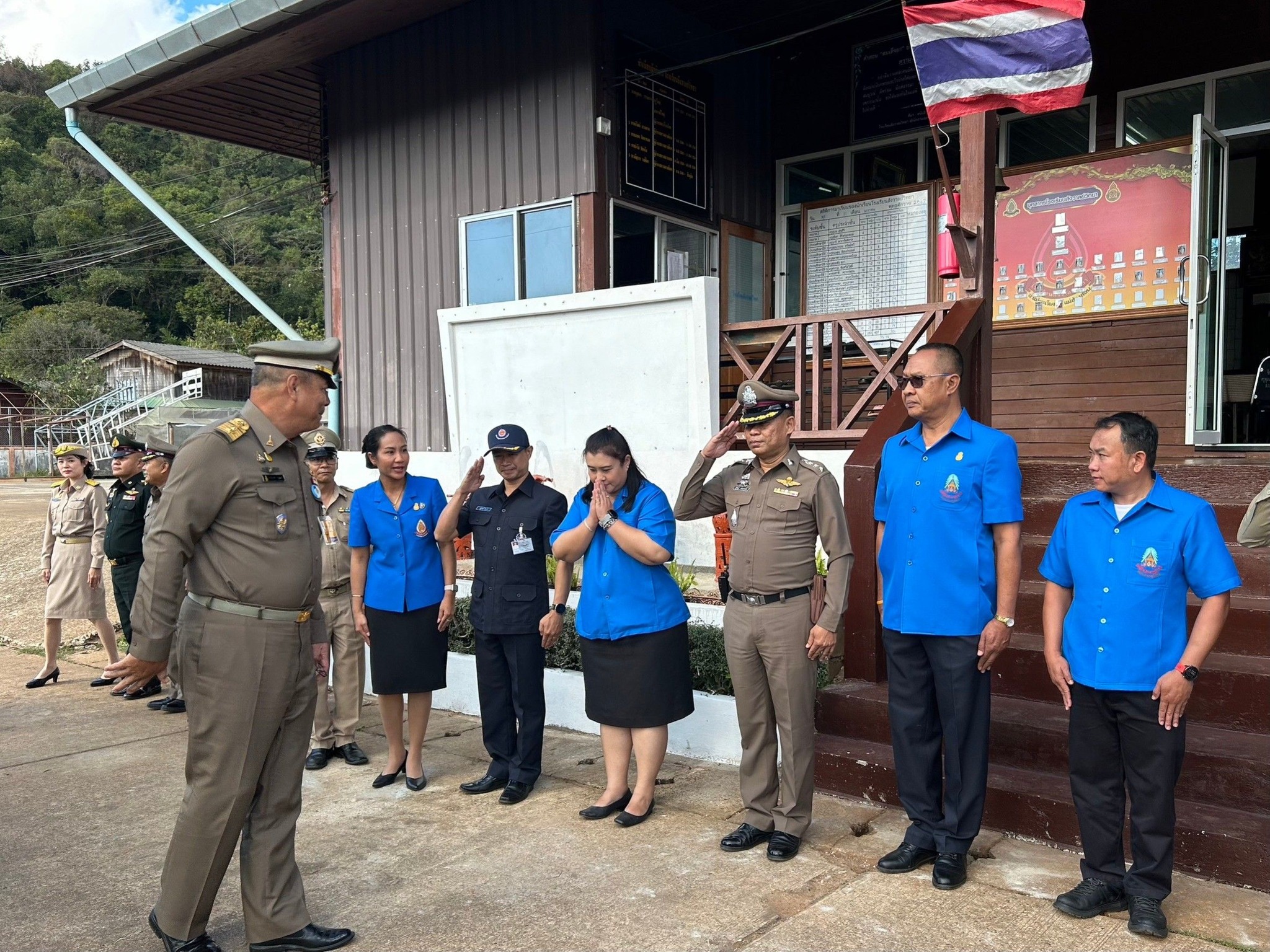 พ.ต.อ.นพดล ใบเรือ รอง ผบก.ภ.จว.แม่ฮ่องสอน ,พ.ต.อ.รัฐวิชญ์ วศินพงศ์ธนัช ผกก.สภ.แม่สะเรียง,พ.ต.ท.นฤดล ลือรำลึกรอง ผกก.สภ.แม่สะเรียง ร่วมต้อนรับ
