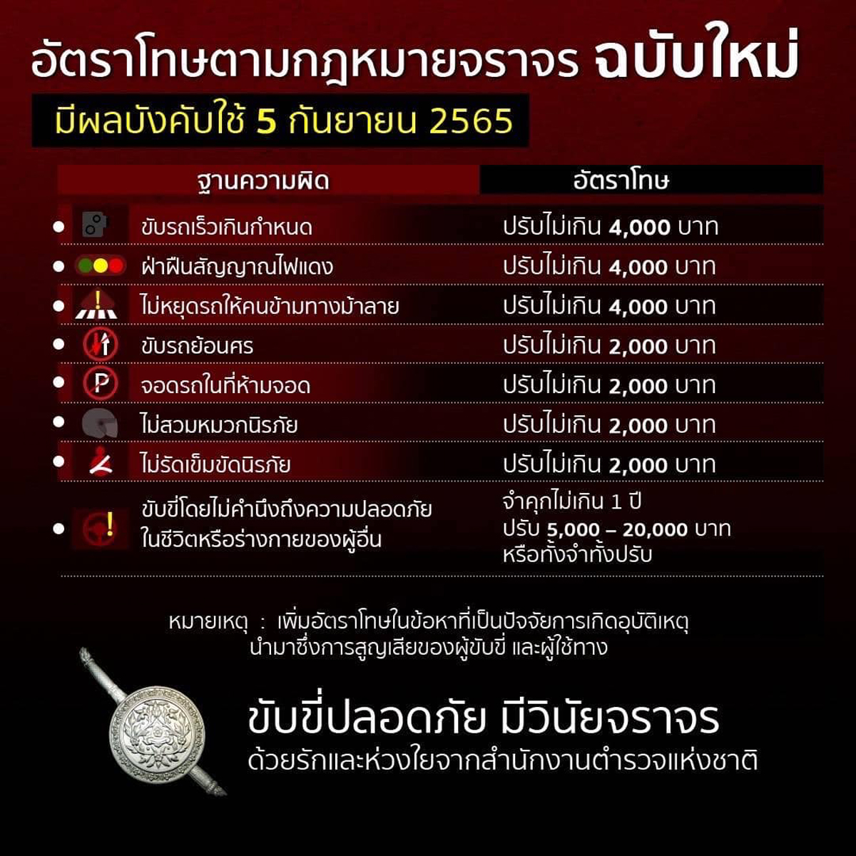 กฎหมายจราจรทางบกฉบับใหม่ มีผลบังคับใช้แล้ววันนี้ 5 กันยายน 2565