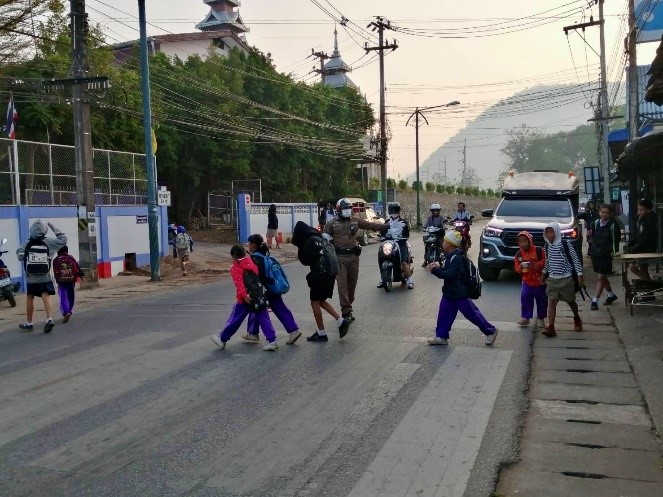 เมื่อวันที่ 17 กุมภาพันธ์ 2568 เวลา 07.00 น. ชุดปฏิบัติการจราจร สภ.แม่สะเรียง อำนวยความสะดวกการจราจรบริเวณหน้าสถานศึกษาและทางม้าลาย